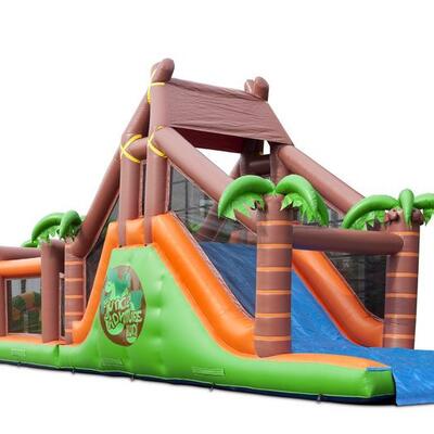 Garantieren Sie ein aktives Erlebnis mit nicht weniger als 7 Spielelementen, die sich auf eine 17-Meter lange Strecke verteilen. Die große Rutsche bildet den krönenden Abschluss.