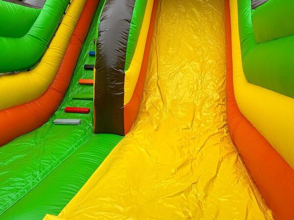 Eine Kombination aus Hüpfburg und Rutsche. Ein Grenzenloser Spaß für Ihre Kleinen. Zuerst kann die Hüpfburg gestürmt werden, dann - dank direktem Durchgang - die große Rutsche mit zu 4 m Höhe und ab geht's nach unten.